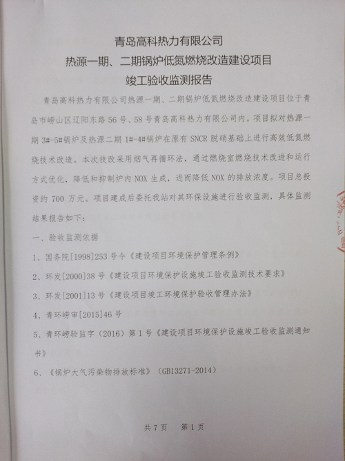 低氮燃燒監(jiān)測報告