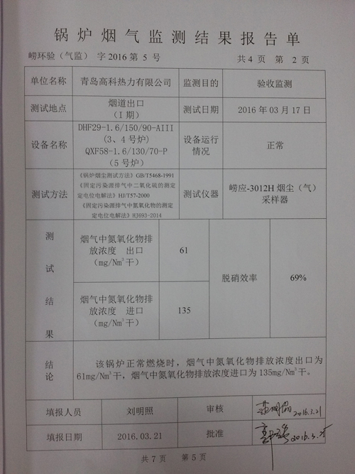 熱源一期3-5#煙氣脫硝項目驗收監(jiān)測報告